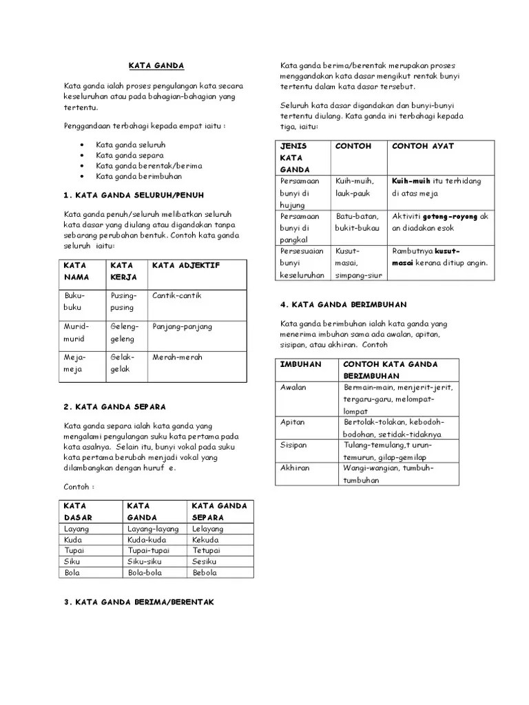 Latihan Kata Ganda Separa Tingkatan 3 - Kata Ganda Pdf. Harini kita buat latihan kata ganda separa iaitu pengulangan suku kata pertama pada kata asalnya. Keadaan di depan pintu gol pasukan kedah ______ akibat daripada . Kata ganda berentak/berirama latihan kata ganda serta jawapan di pautan . Penggandaan terbahagi kepada empat iaitu :